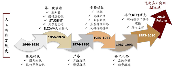 人工智能(Artificial Intelligence,AI)本质上是为了研制出具有类人智能的机器或系统,能够模拟、延伸和扩展人类智能的理论、方法、技术以及应用形式。人工智能作为一门学科诞生至今已有60年的历史,期间经历了2次高潮和低谷,从2010年到现在又迎来人工智能发展的第三次浪潮。