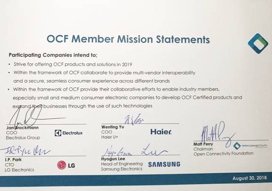 物联网时代,传感器、RFID技术、人工智能、通讯技术等的飞速发展,共享和处理实时数据已变得更容易,行业间的物理边界正在消失,单纯地销售硬件产品在物联网时代已不足吸引用户。因此,企业需要解决的最大问题是愿景和战略必须超越自身的产品和服务,企业所开发的用户体验必须超越多个行业参与者的界限,所以必须要建平台,以集合行业内最优的资源,来满足用户不同需求。海尔作为率先成功转型物联网企业的代表,早就展开了一系列战略部署。在互联互通方面,2014年,海尔率先行业发布智慧家庭领域全球首个智慧生活开放创新平台——U+平台,推出全球首个跨硬件/芯片、跨网络、跨操作系统、跨标准、跨编程语言的协议,实现不同品类、不同服务统一接入U+平台的互联互通新模式。同时,海尔U+也积极发挥自身行业领军者号召力,打造互联互通生态平台。2016年,海尔就成为了OCF董事中唯一的一家中国企业成员,实现了海尔智慧家庭与OCF的200多家企业的跨品牌、跨品类产品的互联互通,加速了海尔智慧家庭的全球化落地进程。本次展会,海尔U+更是与OCF以及伊莱克斯、LG、三星等国际巨头共同签署互联互通合作协议,旨在打造无缝且安全的设备连接体验和安全的互联互通系统,实现全球家电的互联互通和标准化。