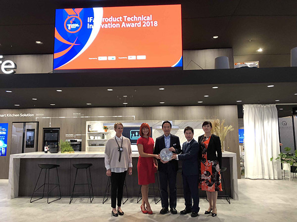 在本次IFA现场,海尔智慧家庭体验区通过个性化的交互体验、AI技术的深度应用、信息安全的可靠保障,营造了全新的智慧生活体验。值得一提是,在由德国工商会和美国国际数据集团IDG举办的”2018IFA产品技术创新大奖”评选中,海尔智慧家庭实力斩获“AI物联品牌金奖”,同时代表食联网交互中心的冰箱获得”智慧物联技术创新金奖“,以表彰海尔在智慧家庭领域的建设成果,标志着海尔智慧家庭引领行业进军国际舞台,开拓智慧生活新时代。