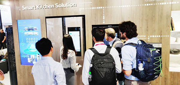 海尔拥有超过160个国家的用户,以用户需求为核心,不断进行产品的创新和迭代,推出全场景定制化智慧成套方案,实现智慧生活场景的引爆,成为智慧家庭生态第一品牌。智慧家庭生态第一品牌的建立,背后离不开海尔以用户为中心的技术、制造、供应链等综合竞争力。海尔建成U+、COSMOPlat、顺逛等全球平台,全力支持海尔一站式智慧成套解决方案的落地。海尔U+平台作为智慧家庭的软件平台,在本届展会上通过成套智慧家庭向全球展示了其在IoT、AI等领域的技术发展成果。平台在推动实现不同品牌、不同家电实现互联互通的基础上,也积极的推动人工智能在家电行业的落地,发布U+人工智能解决方案,基于此推出了分布式语音交互系统,并在硬件、软件、生态服务上向其生态合作方开放,在多领域实现落地。在海尔展区现场,记者观察到,用户通过Amazon Echo音箱就可以实现对家电的控制,满足用户的场景需求,为用户提供全屋智慧生活交互入口的定制。