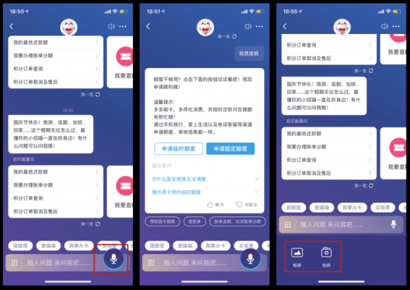 自2014年起,移动电商和O2O行业发展,消费者的购买场景和售后咨询逐渐搬到线上,早已稳固微信阵地的招行信用卡,又率先在自家掌上生活App平台建立智能客服,构建了“1+N”服务生态。“‘1’就是掌上生活App,‘N’是指所有第三方服务平台,包括微信、QQ、知乎、今日头条等,希望我们的服务能无所不在,无微不至。”招行信用卡客服有关人士表示。