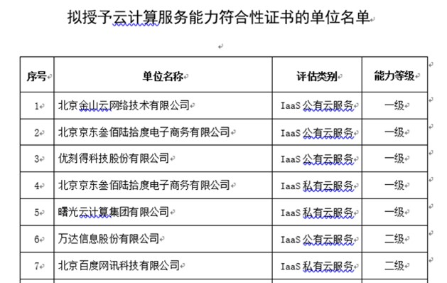 Top3: 云计算服务能力(ITSS)最高等级认证:公有云、私有云双一级