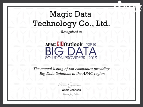 APAC CIO Outlook 是一份面向 CIO、CTO 以及其他IT高层及领导的杂志,专注于向 CXO 群体分享企业 IT 的经验、智慧与建议。“Top 10 大数据解决方案服务商-2019”是亚太地区重要的年度IT专业领域榜单,在亚太地区IT专业人群中具有广泛影响力。