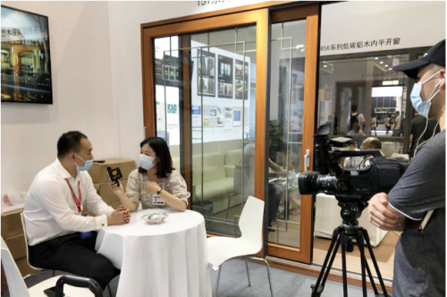 在德重铝木门窗型材总经理助理吴先生接受广东南方电视台、央视栏目《品质》采访时表示:本次展会我们没想到会有如此火爆的场面,因为大家知道疫情确实对国内外的影响非常严重,但与此同时我们也对围绕市场需求,通过十五年的辛苦研发,才推向市场的产品更加自信。毕竟不管是在国内还是国外,像同时拥有耐候,防水,防火,不干裂,不褪色甚至在环保方面达到了惊人的婴幼儿级别的产品还真没有,并且都是经过SGS的检测。现场观众听到可以达到婴幼儿级别的时候都非常吃惊!