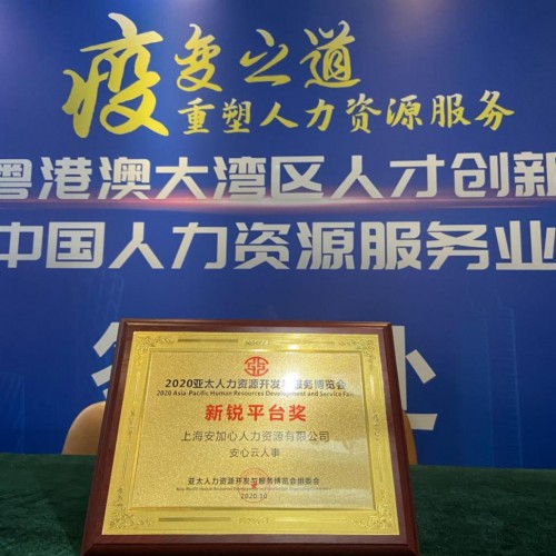 在本次论坛上,经亚太人力资源开发与服务博览会组委会的考核评审,安心云人事获得了“新锐平台奖”称号。据悉,本次论坛以“‘疫变’之道:重塑人力资源服务”为核心主题。人事部中国人事科学研究院院长余兴安,中国人民大学劳动人事学院院长杨伟国,深圳市人才集团有限公司董事长幸辉等出席论坛。