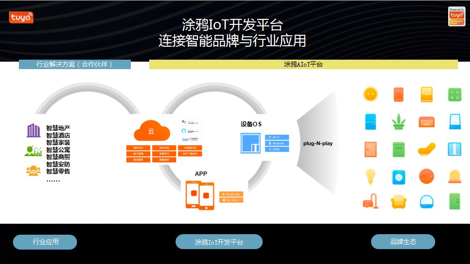 涂鸦智能作为全球AI+IoT领军企业,致力于打造智能制造到智能场景应用的全球化AIoT平台。截至2020年10月,涂鸦IoT开发平台累计有超过23万注册开发者,日语音AI交互超8100万次,创造完全中立的“AI+IoT”平台赋能模式。Powered by Tuya赋能超20万款产品,产品和服务覆盖超过220个国家和地区,辐射全球超10万个线上和线下销售渠道。