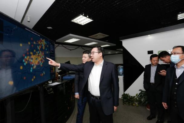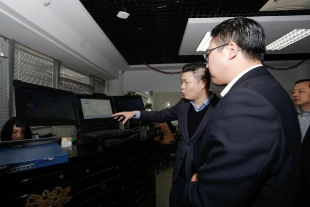 漏洞银行罗清篮先生、张雪松先生、储凡光先生、鲍晓南女士等随行陪同区长李谦一行参观了企业的研发中心、运营中心。