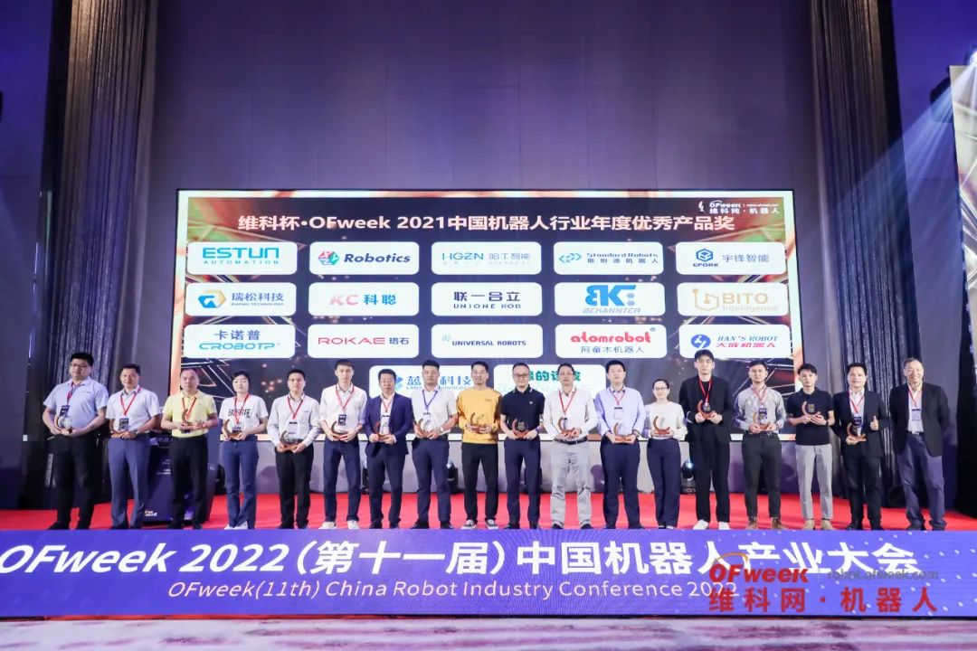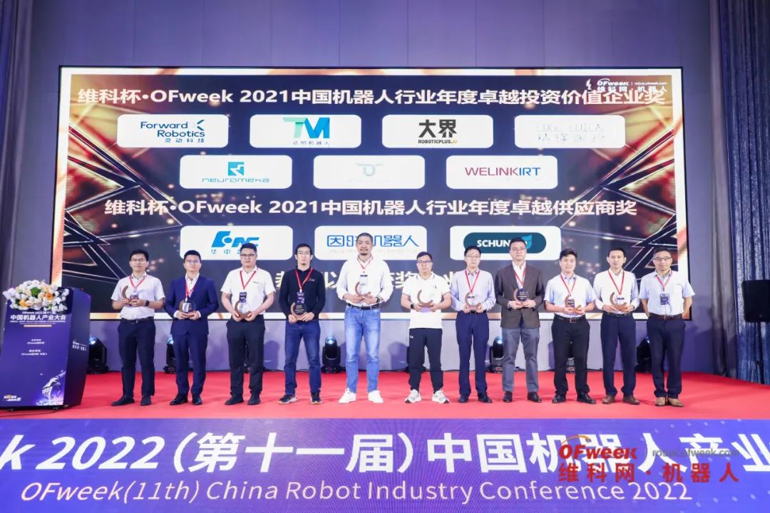 荣获“维科杯·OFweek 2021中国机器人行业年度卓越供应商奖”的企业分别是因时机器人、雄克精密、华中数控。