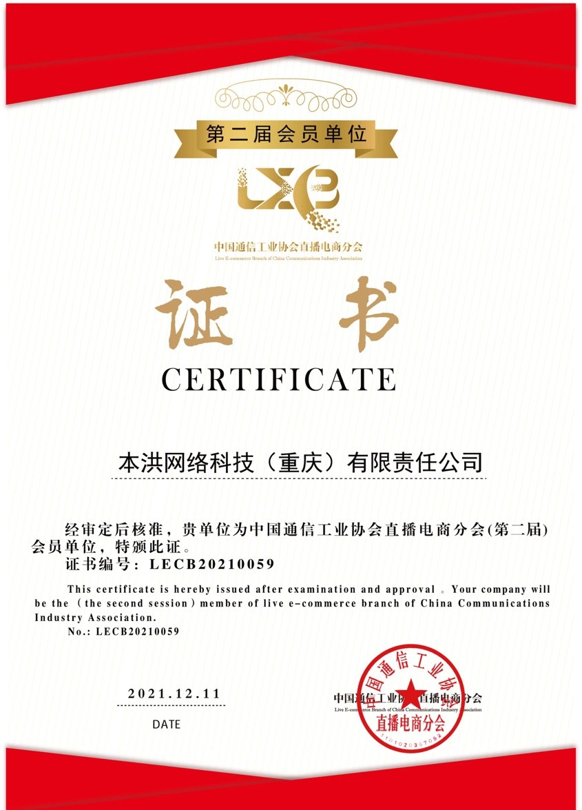 另外,本洪网络也是中国通信工业协会直播电商分会会员单位,中国礼仪休闲用品工业协会第三届理事单位,并拟定计划在生物链林上开发移动区块链培训证书存证系统,杜绝假行业假证。