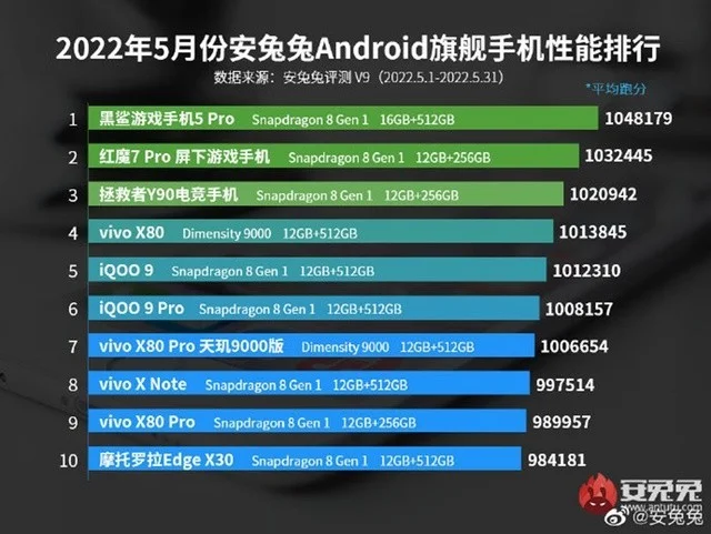 让vivo X80系列全系“升杯”的关键,在于其全系搭载的兼具“独显芯片”与“影像芯片”双重功能的自研芯片V1+,不仅巩固了X系列影像旗舰的定位,通过vivo与芯片厂商联调,双芯合璧更发挥了SoC的性能潜力,加之两个型号在充电、震动马达、屏幕等方面几乎“无差别”的顶配,让X80系列的性能表现获得了“不是电竞机,堪比电竞机”的称号。在安兔兔5月份安卓旗舰手机性能排行中,X80系列实现全系上榜,且X80与X80 Pro天玑9000版成为这个榜单中唯二天玑9000机型,vivo在发布会上喊出的“天玑9000之王”的目标兑现了。