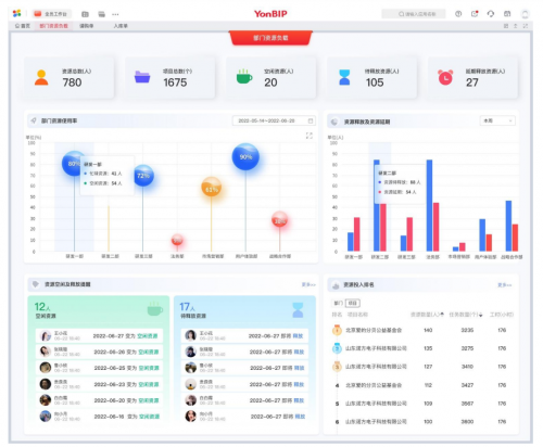 第四,在资源管理和人工成本管理方面,服务类项目管理最核心的就是资源,而资源管理最核心的是对人的管理。传统管理模式下经常存在资源排期不透明,人工成本统计难的问题。用友BIP项目云以项目资源的工作台为核心,在项目计划编制阶段可任务设置多个参与人和投入时长,在资源计划阶段可以查看项目资源计划及人工预计成本,通过工时填报能够实时管理项目的任务。