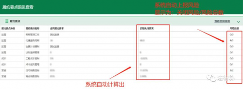 系统对代建合同履约过程中存在潜在风险进行精细化管理,通过对合同潜在风险的识别、预警、跟踪以及处理管理履约潜在风险,并形成符合企业现阶段的专属中台。系统根据代建合同,全面定义代建潜在风险管理,包括运营、工程、成本、财务、营销以及其他风险等一级潜在风险,并定义项目进度、设计方案、成本费用、工程质量、去化率以及项目管理团队等二级潜在风险。系统对履约潜在风险进行定性和定量管理,根据潜在风险性质确定监控方式。通过对潜在风险的分级分类以及责任主体管理,实现合同履约的精细化管理,职责明确,风险可控。