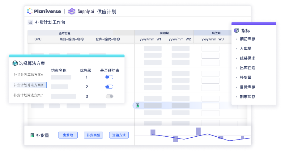备货补货要考虑历史数据、市场需求情况,还要考虑生产供应情况以及仓储配送能力等因素,是非常复杂的决策问题。传统的库存管理系统,可以及时记录产品的出入库、发货、补货等情况,但备货补货策略往往依赖人工决策,通常根据粗略的数据和经验确定安全库存、安全天数、补货量等库存指标,具有较强的主观性和片面性,导致难以及时精准地配置货品。