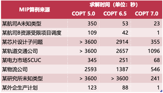 COPT 7.0混合整数规划(MIP)模块测评结果