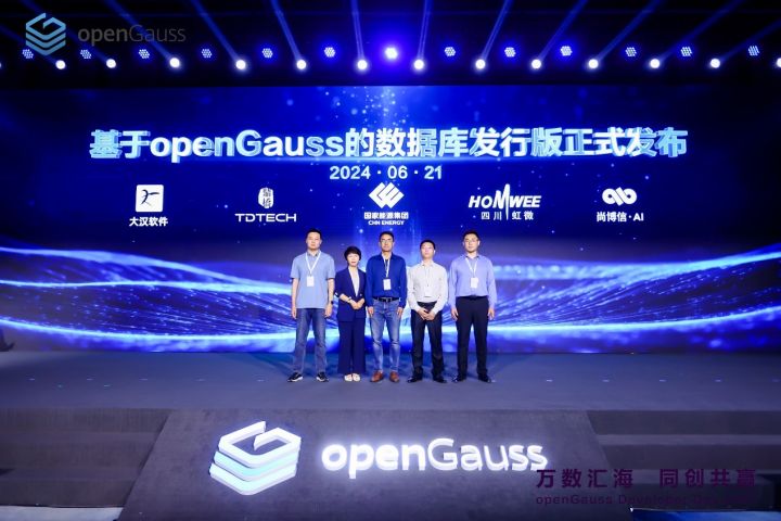 会上,国家能源集团信息技术公司(数据中心)、四川虹微技术有限公司、成都鼎桥通信技术有限公司、北京尚博信科技有限公司、大汉软件股份有限公司五家伙伴结合自身业务场景,联合发布了基于openGauss的数据库企业自用版本。