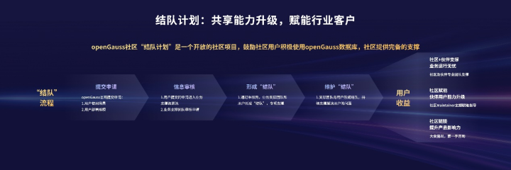 openGauss社区一直秉承着共建、共享、共治的发展理念,为了进一步升级社区共享能力,帮助伙伴、客户和社区之间充分有效连接, openGauss社区“结队”计划正式发布——通过“结队”计划,openGauss将被更多的客户应用到核心业务场景中去,发挥更大的价值;而客户将拥有更先进的数据库核心技术,更好地提升自身能力;伙伴们也将共享更多社区资源,打开更多行业机会点。