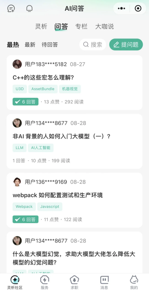 除了AI自动生成代码,灵析社区还设置了问答板块。无论用户是遇到棘手的bug,还是对某个技术点心存疑惑,只需在问答区发帖求助,来自全球的程序员同行与专家便会迅速响应,为用户提供解决方案或思路启发。