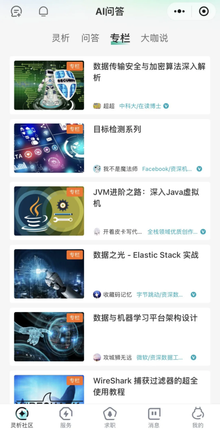 此外,还有聚集了来自中国科学技术大学博士、字节跳动、谷歌、微软等国内外顶尖科技企业的资深程序员与专家的专栏板块。在这里,他们定期分享最新的技术趋势、实战经验和深度见解,为程序员们提供了一个学习交流、拓宽视野的宝贵平台。