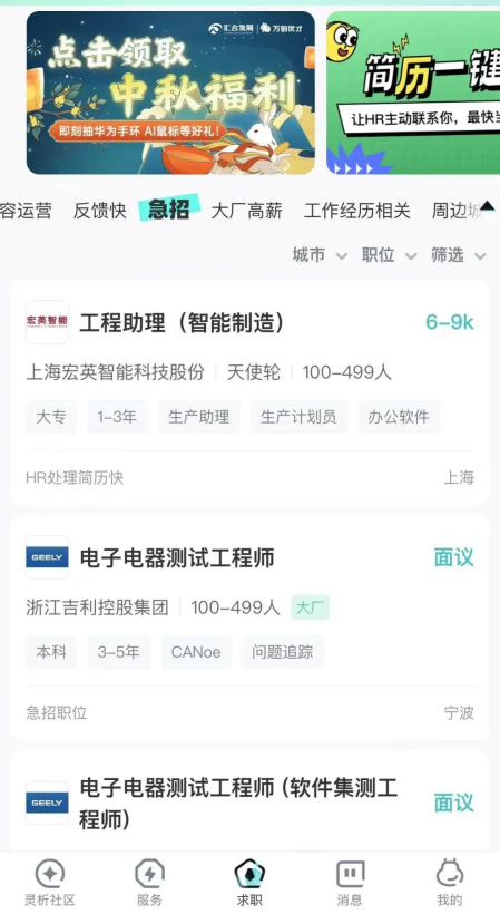 除了新增很多新颖的AI功能外,“万码优才”此次升级换代还增加多个岗位推荐标签,如“反馈快”、“急招”、“大厂高薪”、“工作经历相关”等。这些标签基于求职者的搜索历史、行为偏好以及岗位的实际需求而生成,能够实时推荐最符合求职者期望的职位。无论是追求快速反馈的求职者,还是渴望加入大厂、追求高薪的精英,亦或是希望找到与自身工作精力相匹配的岗位,都能在这里找到满意的选择。