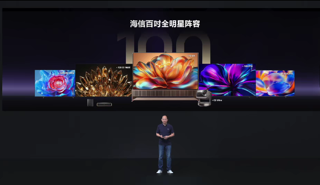 9月29日,海信电视已经发起一场新的“百吋风暴”,一口气发布海信电视100E8N Ultra、110UX、100E7N、100E5N Pro、激光电视星光S1 MAX,以及Vidda C2 Ultra激光投影仪等多款新品,以全技术品类辅以全场景AI,强势引领百吋及以上电视市场的加速普及。