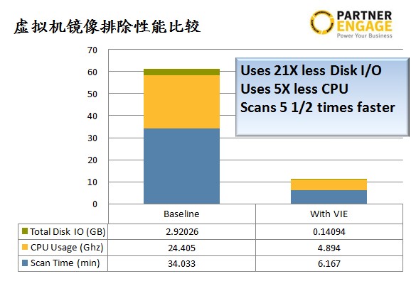 磁盘的I/O使用将是原来的1/21,CPU的使用将是原来的1/5,扫描所用时间减少5.5倍,证明SEP12.1在虚拟机上的性能有了大大提高。