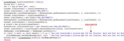 “walk短信大盗”被安装到手机中后,随即将手机中的短信、手机号码、IMEI、IMSI等信息上传到木马服务器,窃取用户隐私。并且私自给用户通讯录中的所有联系人发送推广短信,直接造成用户损失较大的短信费用。如果联系人较多,那么所造成的短信费将更多。