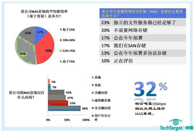 在非NAS用户中,43%没有共享网络存储的需求,30%考虑在今年部署NAS,17%仍然坚持使用SAN。