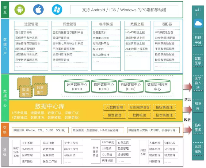 主要以基于大数据架构的医院数据中心管理为目标,建立统一的数据管理平台,以数据存储、管理、治理及分析为主,不牵涉业务流程,将数据从入口