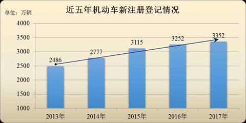 2017年全国机动车和驾驶人数量保持高位增长,新注册登记机动车达3352万辆,新增驾驶人3054万人。新注册登记的机动车中有汽车2813万辆,机动车