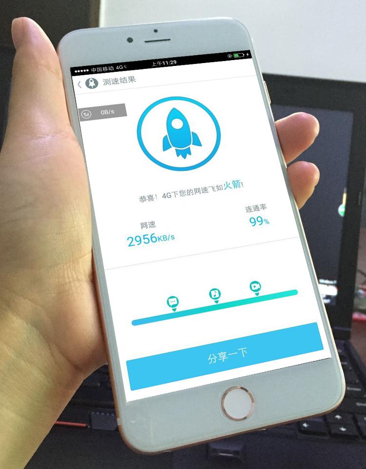 从上面图片可以确实是支持移动4G网络,速度达到了 下面再用联通的卡测试下