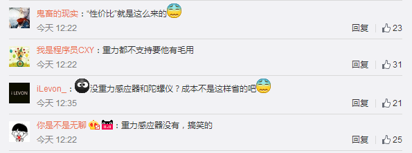 图:乐视1s无重力感应器和陀螺仪遭网友吐槽