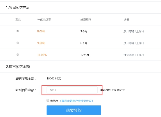 第三步:输入需要预约的金额,点击“我要预约”即可完成整个预约过程,非常便捷!