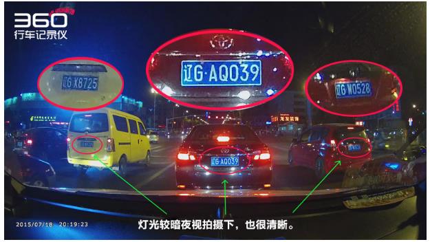 众所周知,行车记录仪的主控芯片(CPU)负责视频压缩处理,对于画质有着举足轻重的作用。其中美国安霸是业界比较公认的高端方案,其拥有的高效压缩技术、高清视频影像处理能力,在低码率的情况下是图像质量最好的,在安霸最新的7系CPU中,360选用的A7LA55定位中端偏高,支持1296P@30fps,可谓下了血本。在光学配置上,360行车记录仪采用F1.8大光圈,超广角160度的最大真实视角,令视角可以远远大于驾驶员在汽车两个A柱之间的视角,可以充分满足网友的需求。360行车记录仪可以提供1296p和1080p两种录制分辨率,据实测,在白天环境下,其表现非常优秀,画面干净明亮清晰,可轻松看清前方车牌号码。