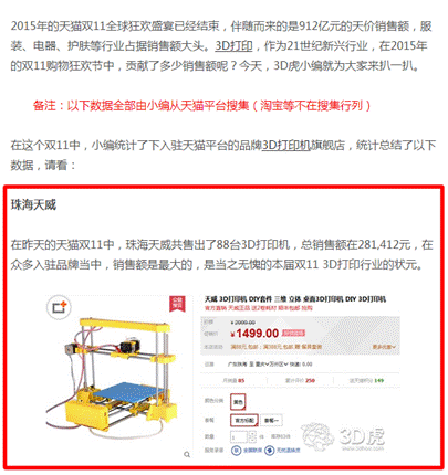 网页截图-来源:3D打印虎 《天猫双11 3D打印机贡献了多少?》