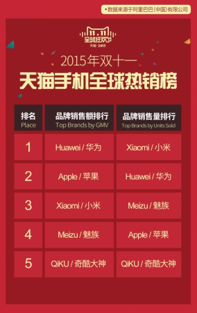 图:360奇酷跻身天猫手机全球热销榜国产手机品牌前四