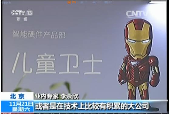 因此中央电视台《朝闻天下》栏目组特意来到360公司,请教360儿童手表团队,为何360儿童手表做到如此安全,没有出现任何隐私泄漏的危险漏洞,但小品牌却发现如此多危险漏洞,同时专访360儿童手表漏洞实验室专家杨卿及360儿童手表安全专家李崇欣,并录制成节目,为消费者普及儿童智能手表安全漏洞知识,并于11月21日在中央电视台新闻频道CCTV-13《朝闻天下》栏目播出《儿童智能手表调查》新闻,引发全国关注。