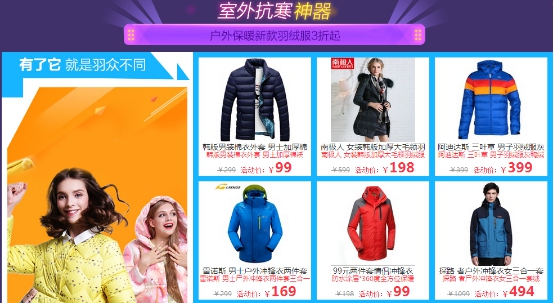 与此同时,户外保暖新款羽绒服3折起,让您外出旅行温暖如春。阿迪达斯三叶草男子羽绒服活动价399元,灰鸭绒轻薄保暖。RAX舒适保暖雪地靴活动价89元,全真皮保暖,优质反绒毛皮材质,高密加厚绒毛。如此琳琅满目的户外保暖利器,相信一定会另您拍手称快,从而让消费者在寒冷的冬季武装起来,对抗大雪的侵袭。