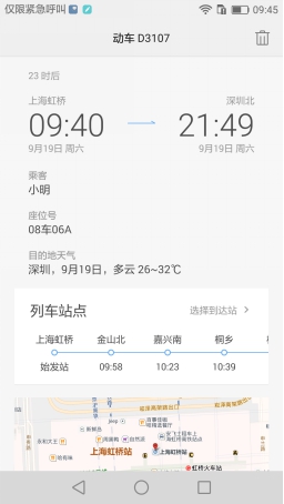 如果你是乘坐火车的话,你是不是会担心错过火车站,或者想了解当前的站点呢?情景智能火车下站提醒让这些痛点统统消失。收到火车预定短信后,情景智能自动生成火车卡片,用户点击火车卡片进入详情后,可以查看列车站点信息,也可以选择自己的下车站点,设置下车提醒,让你再也不怕坐过站点。