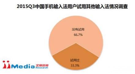 iiMedia Research(艾媒咨询)数据显示,在过去的三个月66.7%的用户没有尝试过其他输入法,表明大多数用户在使用一种手机输入法的同时并没有多大意愿尝试其他输入法。