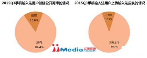 iiMedia Research(艾媒咨询)数据显示,仅有15.6%的用户创建过公开词库,10.7%的用户上传过自己设计的输入法皮肤。艾媒咨询分析师认为,移动互联网时代更加强调用户体验和用户参与,手机输入法除了满足用户更快更准确的输入外,也要让用户觉得有趣更好玩,并且将这种参与的热情传递给其他用户,享受分享带来的快乐。通过对部分手机输入法用户进行深入访谈,艾媒咨询分析师认为,大部分用户没有上传输入法皮肤主要是由于自己不会制作,但他们会更有兴趣使用官方或其他用户发布的皮肤内容。