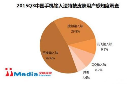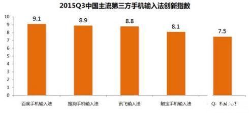 iiMedia Research(艾媒咨询)数据显示,2015Q3中国主流手机输入法创新指数方面,百度输入法凭借其颜文字、特技皮肤以及和第三方联合推出“免费机械键盘“概念等多方面的创新形式领跑其他手机输入法,获得了广大用户的良好评价,特别是对年轻用户产生了很大的吸引力。
