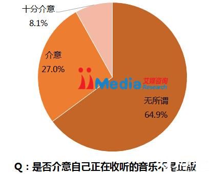 在针对手机音乐客户端用户对于版权看法的调查中,64.9%的被受访者对于自己正在收听的音乐是否正版表示无所谓,而表示十分介意的仅有8.1%。很长时间以来,中国手机网民已经习惯了获取各种免费的服务,版权意识较为薄弱。