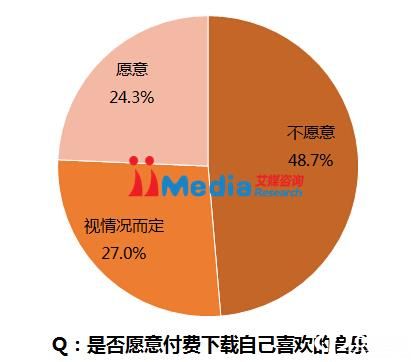 数据显示,48.7%的被调查者不愿意付费下载自己喜欢的音乐,27.0%表示要视情况而定,24.3%表示愿意付费下载自己喜欢的音乐。艾媒咨询分析认为,随着国家以及整个行业在数字音乐版权方面的努力,中国移动音乐用户在移动音乐的付费意愿方面有了一定比例的提升。