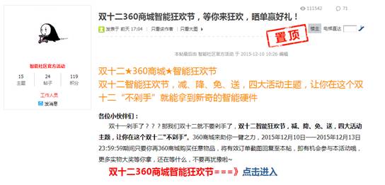 从12月7日开始,到12月13日,持续一周的360商城“智能狂欢节”,购物满额减价、千元智能硬件免费试用、热门智能硬件降价出售,全场福利不停送。360商城在展示自身强大的智能硬件体系软实力的同时,也给广大智能硬件粉丝带来了实实在在的优惠,真正带领粉丝玩转智能生活。
