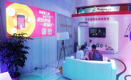 在京东微联展示区,用户可以使用京东微联这一“超级APP”操控不同智能硬件,体验未来智能生活,吸引了不少人前来体验。