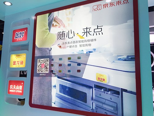 在创新硬件互动区,一个个简洁圆润白色按钮——“京东来点”向人们展示了3.0时代的购物新体验。