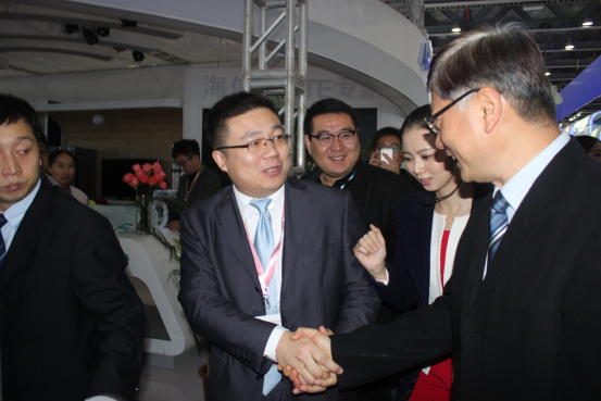 厚积薄发,有实力总会绽放光芒。12月15日,海信手机展位再迎贵客,中国移动董事长尚冰在青岛海信通信常务副总经理李建成的陪同下,近距离体验了海信C1手机4G高清音视频通话和VoLTE加密、时尚三防等技术成果。