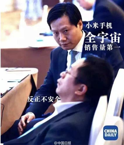 在第二届世界互联网大会休息期间,360董事长周鸿祎正闭目养神,小米董事长雷军在一旁专注地偷窥他,由于雷军的眼神中包含各种强烈情感,却唯独与爱及友好无缘,因此被网友戏称为“是2015年真情流露第一瞥”,随后该图片引发众多网友的疯狂PS。当晚,360董事长周鸿祎在微博发文回应了此事,表示:“一觉醒来,发现被这张照片刷屏了,这是什么意思,谁拍的,我确实太累睡着了,在我熟睡中,到底发生了什么,谁能告诉我?”