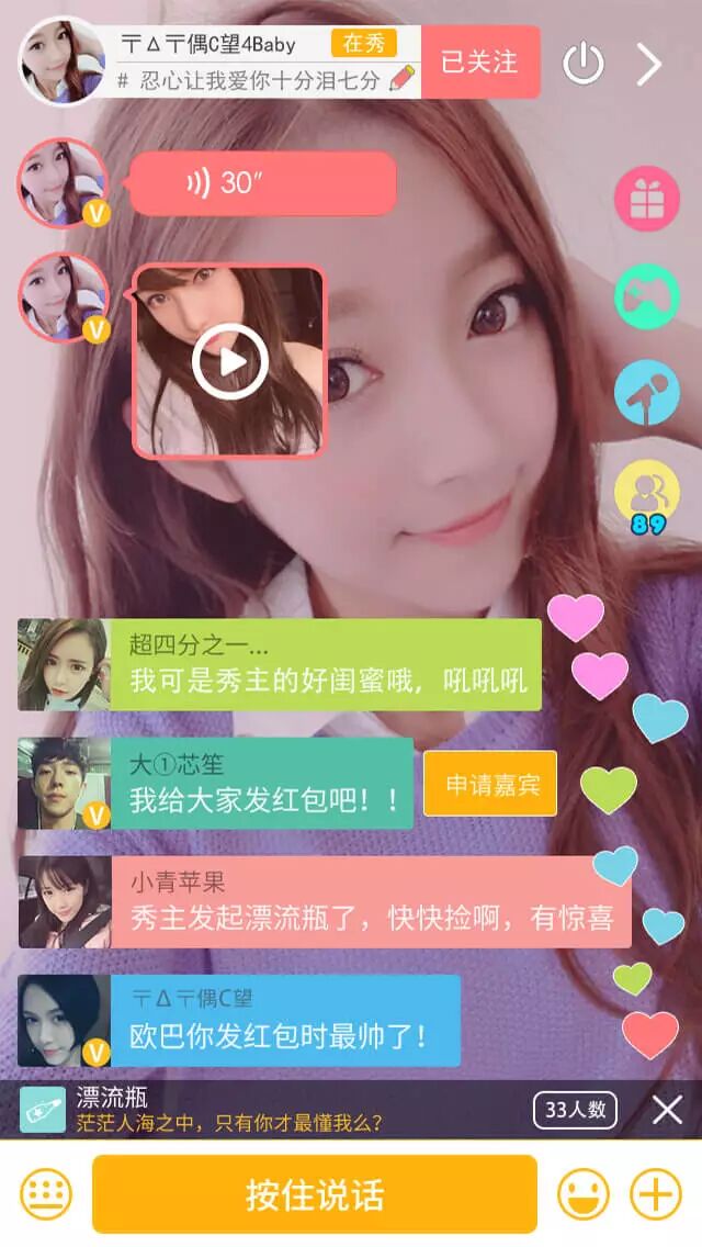 而年轻用户喜欢互动这一点我们也有特别直观的感受,自从手Q公众号开通以来,我们发现90、95后用户的互动性特别强,即使没有任何回复也阻碍不了他们留言的积极性,所以服务于他们的产品,在实时互动性方面一定要很强。友加的秀场里秀主可以与其他用户进行一对多的实时互动,粉丝之间也可以相互交流,让沟通更快、更高效,做到真正的“即时社交”。为了增加产品的互动性,友加官方除了不定期举办活动,还有长期存在的聊天大厅,真正做到“全世界陪你说话”。友加的秀场开始只有语音和文字,后来加入了互动性很强的游戏,方便主播和观众进行互动,增加产品的趣味性和粘性。在未来内外还会加入视频直播,让虚拟交友更加顺畅自然。作为一个新用户刚进来友加,完全不会有那种半天没有人搭理的情况,而是可以迅速在秀场里跟秀主或其他粉丝聊起来,玩起来。