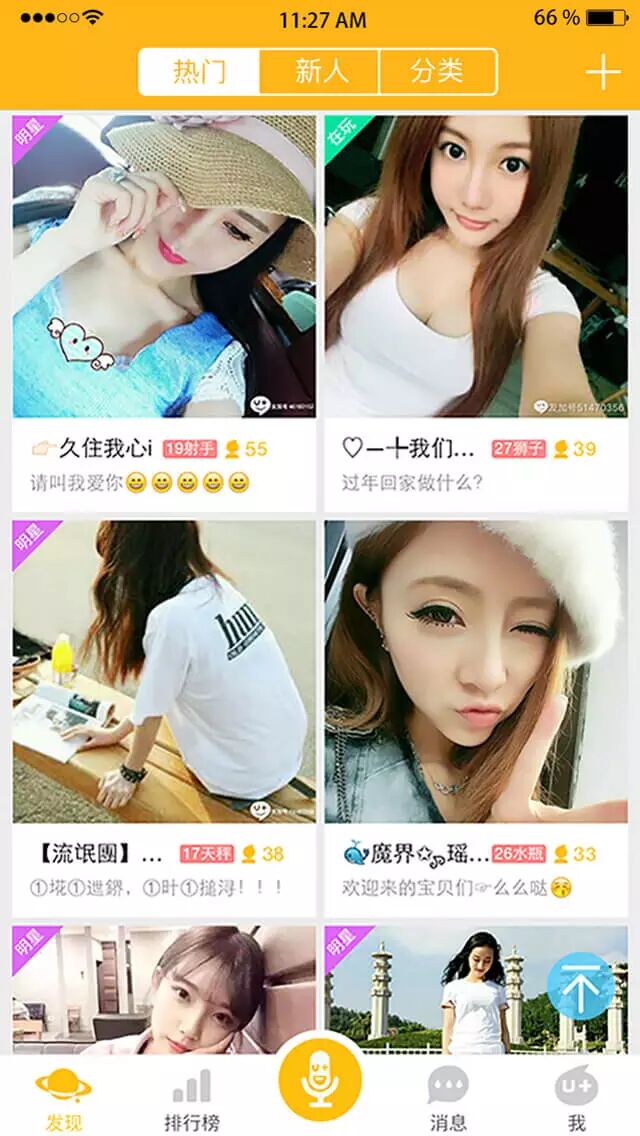 针对年轻人爱秀、爱互动的特点,友加为每位用户都开了一个"个人秀场",在秀场里用户可以即时发语音、视频、照片等,还可以与在线的粉丝实时互动。但是,跟"传统"秀场很不一样的是,在友加人人都能秀。友加上每一位用户既是观众又是主播,如果将“传统”秀场模式看作B2C,那友加就是C2C。“传统”秀场上的主播有点像微信公众号上的自媒体人,需要一定的专业性才能产出用户喜欢的内容;友加上的主播类似于个人微信的朋友圈,每个人都可以随时随地发内容,发自己喜欢的内容,更加扁平化、去中心化、碎片化。